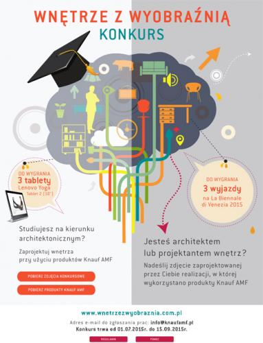 Ideą konkursu "Wnętrze z wyobraźnią" jest prezentacja przez architektów najbardziej kreatywnych rozwiązań z zastosowaniem produktów Knauf AMF. Nowością w tegorocznej edycji jest osobna rywalizacja "dorosłych" architektów i studentów kierunków architektonicznych.