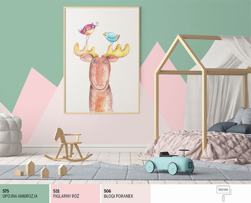 Turkusowy kolor na pewno spodoba się małym księżniczkom, jeśli połączymy go z pastelowym różem i złotem. W dziewczęcych pokojach będzie stanowił wdzięczne tło dla barwnych plakatów lub naklejek ściennych. Efekt jak z domku dla lalek uzyskamy, łącząc ściany pomalowane turkusową farbą - na przykład z kolekcji marki Śnieżka - z białymi ramami okiennymi, listwami przypodłogowymi i sufitem.