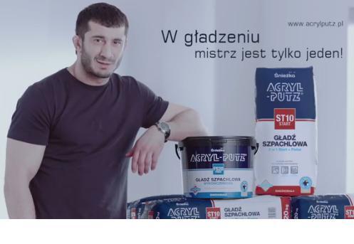 Nowoczesne gładzie szpachlowe ACRYL-PUTZ® cechuje wysoka jakość, łatwość aplikacji oraz uzyskany przy ich zastosowaniu efekt idealnie równych, białych powierzchni. Wizerunek Mameda Khalidova jest spójny ze strategią marki. Celem komunikacji jest wywołanie u klienta naturalnego skojarzenia z perfekcyjnym oraz skutecznym w działaniu ekspertem. Wszystkie te cechy charakteryzują markę Śnieżka ACRYL-PUTZ® - mistrza w gładzeniu.