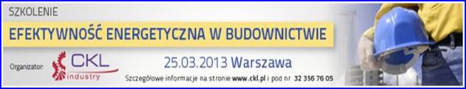 25 marca 2013 r. w Warszawie odbędzie się szkolenie na temat efektywności energetycznej w budownictwie. Organizatorem szkolenia jest spółka CKL SA.