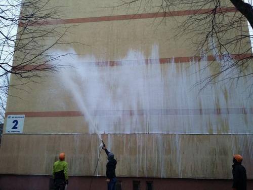 "Dla jeszcze lepszego efektu, po pierwszej warstwie dezynfektantu, możemy dokładnie wyszczotkować ścianę, zmyć ją wodą i dopiero wtedy nanieść drugą warstwę preparatu. Na dokładnie oczyszczoną fasadę nakładamy silikonowy grunt, który zabezpieczy powierzchnię, a jednocześnie będzie doskonałą bazą dla farby elewacyjnej. Dopiero tak przygotowana ściana może być pokryta właściwym produktem" - mówi Radosław Marciniec. Prace wykończeniowe powinny być wykonane z użyciem farb hydrofobowych, czyli odpychających wodę, samoczyszczących, z zawartością silikonów oraz biocydów.