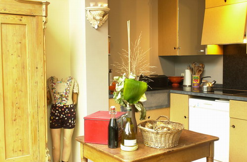 Wykorzystując takie kolory, możemy pobawić się efektem gradacji. Okolice płyty kuchennej - najbardziej narażone na zabrudzenia - warto wymalować ciemniejszym odcieniem Srebrzystej rosy. Nie tylko będzie maskował ślady kuchennych popisów, ale także stanie się ciekawym kontrastem dla słonecznej Mandarynki, która rozświetli pozostałe ściany kuchni. Taką kombinację barw uzupełnią ciekawe meble z drzwiami z płyty pilśniowej. Od intensywnej Mandarynki w kuchni warto przejść do delikatnego Morelowego pastelowego na ścianach salonu. W ten sposób zaznaczymy granicę dwóch stref, utrzymując jednolity efekt rozświetlenia. Odmienny charakter pomieszczenia podkreślą sosnowe meble i ścienne ozdoby w klimacie retro.