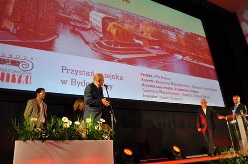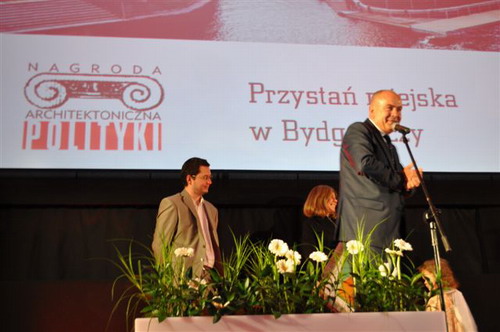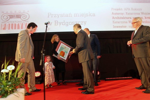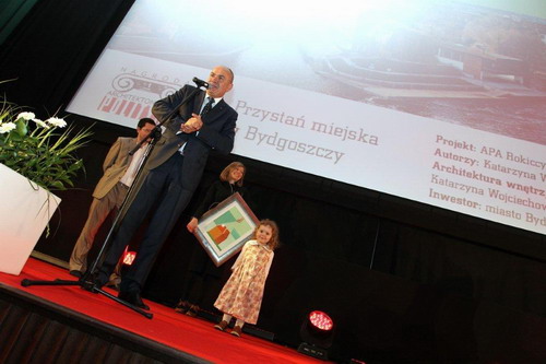 Po długich dyskusjach jury wybrało Miejską Przystań w Bydgoszczy, dzieło dwójki młodych architektów: Katarzyny Wojciechowskiej-Rokickiej i Tomasza Rokickiego z pracowni APA Rokiccy, absolwentów Royal Institute of British Architects. Inwestorem w projekcie było miasto, co jest przykładem gotowości inwestorów publicznych do niekonwencjonalnych, odważnych rozwiązań. Projekt powstał w 2010 r., ukończono go dwa lata później. Koszt realizacji wyniósł blisko 20 mln zł. Państwo Rokiccy przybyli na galę ze swoją małą córeczką, która - jak sami powiedzieli, jest ich najpiękniejszym wspólnym "projektem". Przedstawiciele firmy ATLAS z przyjemnością wręczyli pociesze dwójki architektów pluszowego bociana.