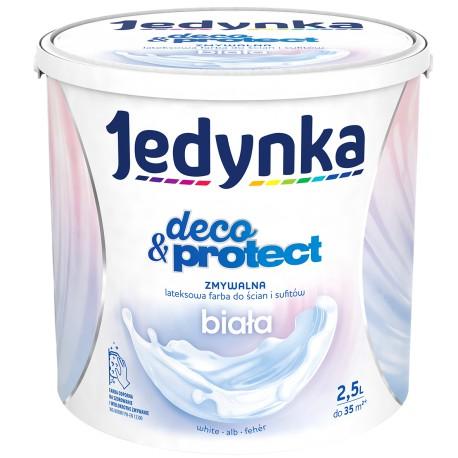 Marka farb Jedynka wzbogaca linię Deco & Protect o kolejny produkt. Tym razem na rynku pojawiła się nowa, wysokiej jakości lateksowa farba do ścian i sufitów - Jedynka Deco & Protect Biała. Na ścianie tworzy ona inteligentną powłokę, która stanowi barierę dla plam i zabrudzeń, umożliwiając ich łatwe usuwanie. Jednocześnie produkt zapewnia bezproblemowe i wydajne malowanie, przez co jest bardzo wygodny w użyciu.