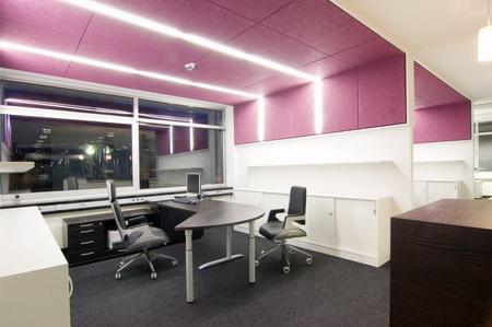 W obiektach biurowych dobra akustyka to przede wszystkim polepszenie warunków pracy oraz wyższa efektywność pracowników. Dzieje się to dzięki podwyższeniu wskaźnika zrozumiałości mowy. Jest to niezwykle ważne we wnętrzach biurowych typu open space, w których komfort akustyczny może być łatwo zakłócony. Istotą jest tutaj ograniczenie zasięgu dźwięku, aby hałas z jednego stanowiska pracy nie przeszkadzał innym osobom. Wskaźnik poziomu pogłosu powinien więc w tym przypadku jak najniższy.