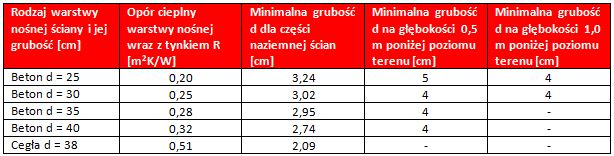 Zgodnie z obowiązującymi wymaganiami polskich przepisów budowlanych, minimalna wartość sumy oporów cieplnych warstw ścian stykających się z gruntem do głębokości 1 metra od poziomu terenu powinna wynosić odpowiednio 0,8 m2K/W dla pomieszczeń o temperaturze od 4 do 16°C oraz 1,0 m2K/W dla pomieszczeń o temperaturze powyżej 16°C.