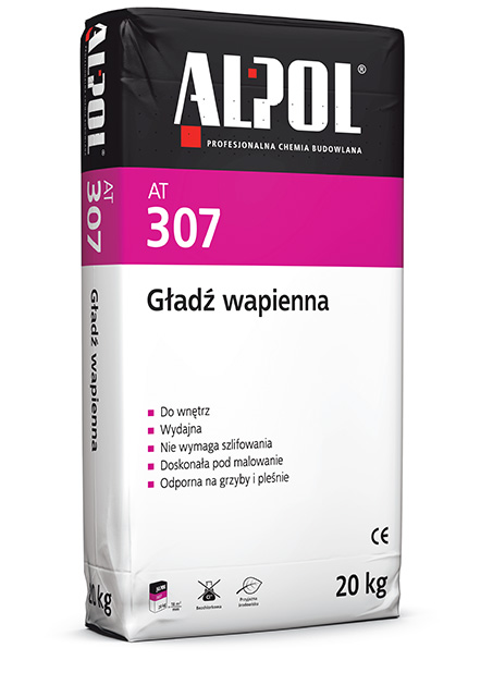 Tynki wapienne, cementowo-wapienne i cementowe oraz beton prefabrykowany lub z szalunków systemowych, płyty gipsowo-kartonowe. Przygotowanie podłoża: Podłoże musi być suche, równe, nośne, chłonące wodę i oczyszczone z osypujących się elementów. Ze starych powierzchni należy usunąć resztki odpadających farb. Pęknięcia i rysy rozkuć. Ubytki uzupełnić zaprawą szybkowiążącą ALPOL AZ 130 lub wyrównawczą ALPOL AZ 135. Wszystkie zagłębienia, nierówności, dziury i kanały muszą być wypełnione i zamknięte. Słabe podłoża wzmocnić gruntem ALPOL AG 700. Nowe tynki i powierzchnie betonowe nie wymagają gruntowania. Przed nakładaniem gładzi podłoża nie wolno zwilżać, należy je odkurzyć. W przeciętnych warunkach gładź wapienną można nakładać na nowe tynki wapienne najwcześniej po 24 godzinach od ich wykonania, na nowe tynki cementowe i cementowo-wapienne po upływie minimum 14 dni. W warunkach obniżonych temperatur czas przerwy technologicznej należy odpowiednio wydłużyć. Dane techniczne gładzi AT 307: