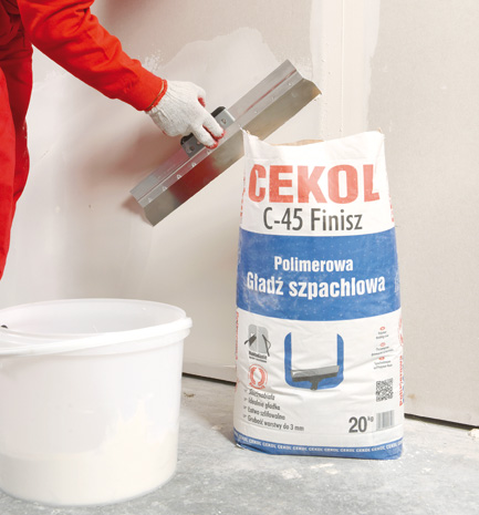 Po związaniu i wyschnięciu tynku, jego powierzchnię należy zagruntować i można przystąpić do cekolowania, czyli nakładania gładzi szpachlowej. W ofercie firmy są gładzie, które można nakładać ręcznie bądź mechanicznie przy pomocy odpowiednich urządzeń, co znacznie przyspiesza pracę. Przed rozpoczęciem prac szpachlarskich zaleca się użycie gruntu głęboko penetrującego Cekol DL-80. Dzięki zastosowaniu gładzi Cekol można mieć pewność, tak wykończone wnętrze będzie spełniało pożądany efekt estetyczny, będzie trwałe oraz bezpieczne dla użytkowników.