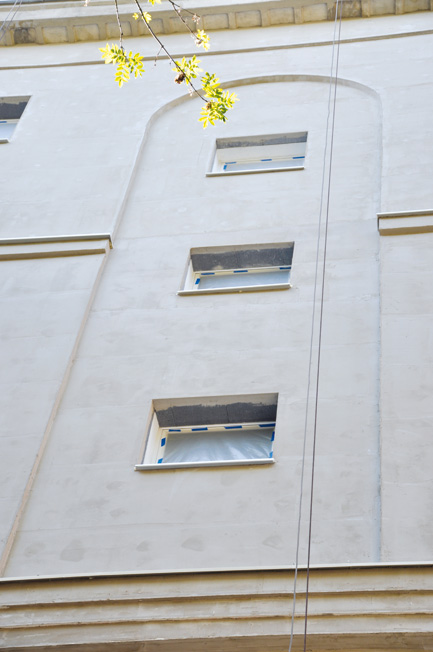 Także nachylenie cokołu budynku nie zostało naruszone podczas prac. Remont elewacji wraz z jego termomodernizacją ma charakter zachowawczy. Dlatego w maksymalnie możliwy sposób przywraca się jego pierwotny wygląd.