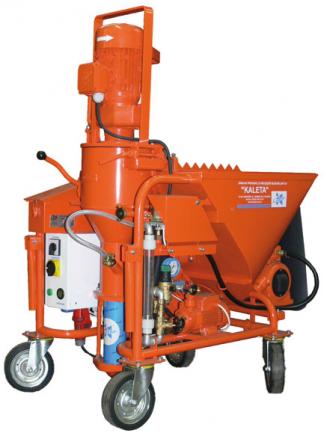 Typ. KALETA–150 to agregat tynkarski przeznaczony do mieszanek przygotowanych na budowie o uziarnieniu do 6 mm (wapienno-cementowe, wapienno-gipsowe, specjalne, wylewki samopoziomujące oraz wylewki wapienno-cementowe).