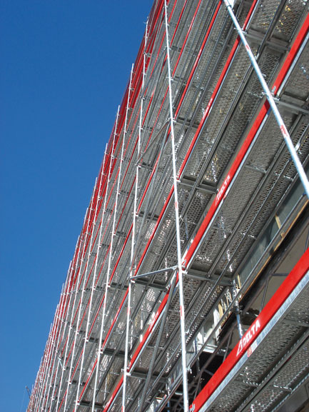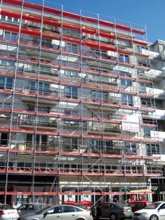 Rusztowanie Delta 70 ma certyfikat bezpieczeństwa B. System idealnie sprawdza się przy pracach tynkarskich i malarskich, przy których nie wymaga się składowania materiałów.
